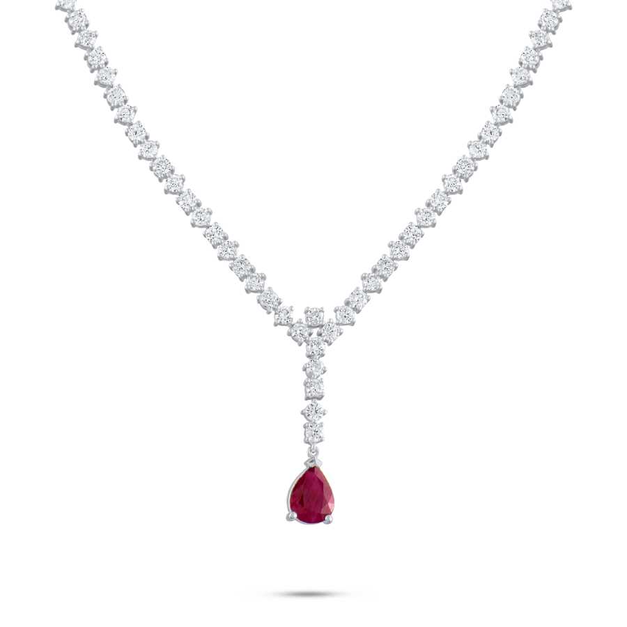 4,37 Karat Diamant Tropfen Kesim Rubin Collier
